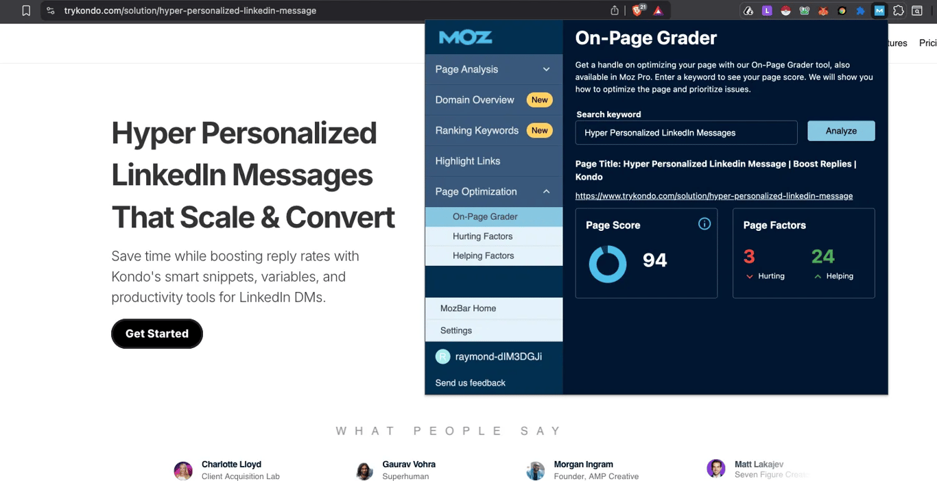 When we first looked under the hood, the site had helpful content but Google did not pick it up. The pages had Kondo’s name written all over it but missed the terms people actually search for, like “Linkedin inbox management”.