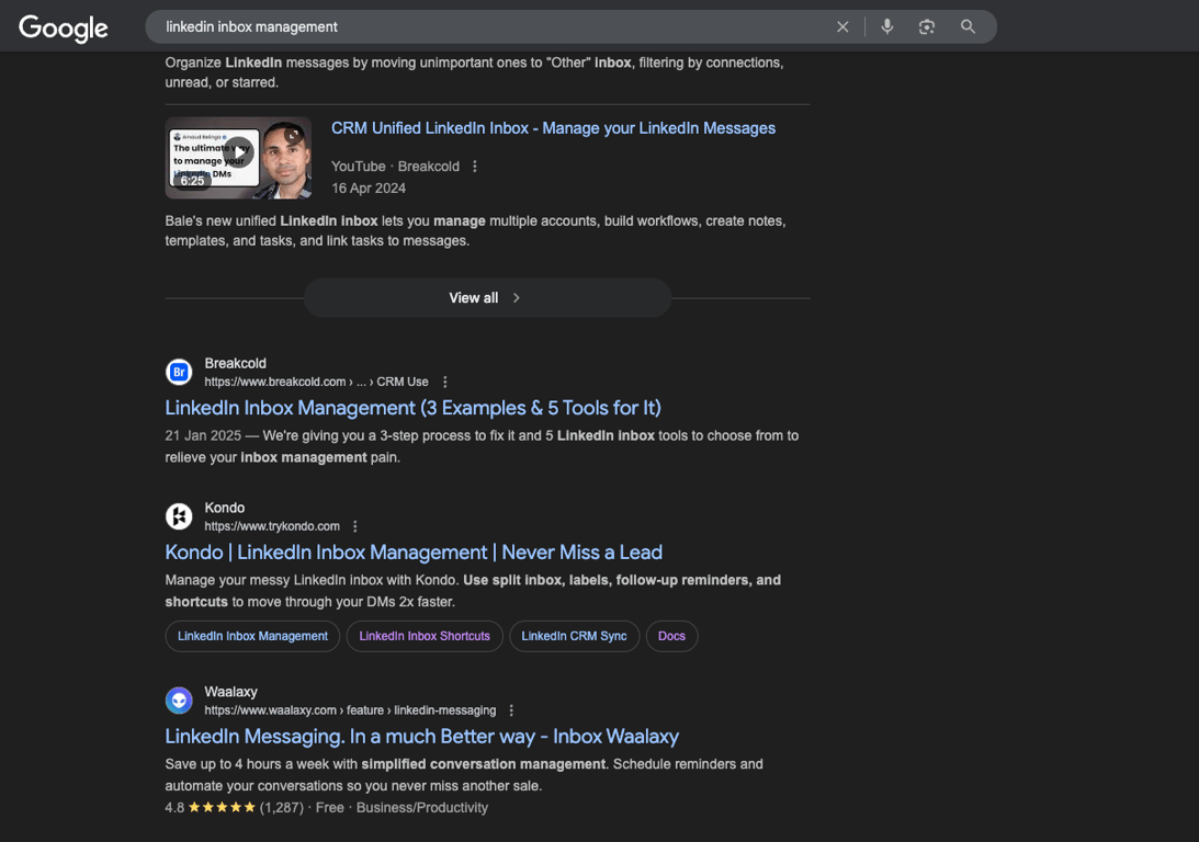 At the same time, we began publishing new posts aimed at the exact problems their users face. With those in place, CEOs, sales teams, recruiters searching for a better way to manage their Linkedin messages now land on pages with clear calls to action and copy that speaks their language.